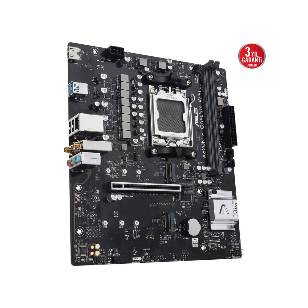 ASUS A620 serisi anakartlar, AMD Ryzen 7000 serisi işlemcilerin tüm potansiyelini ortaya çıkarmak için ustalıkla geliştirildi. Sağlam güç tasarımına, kapsamlı soğutma çözümlerine ve akıllı ayar seçeneklerine sahip A620M-F GAMING WIFI, günlük kullanıcılara ve kendi PC’lerini toplayan kişilere kullanışlı yazılımlar ve özelliklerle çeşitli performans ayar seçenekleri sunar. Bu platform, gelişmiş yapay zeka bilgisayarlarına ait uygulamaların talep ettiği güç ve bağlantıları ortaya koyar.