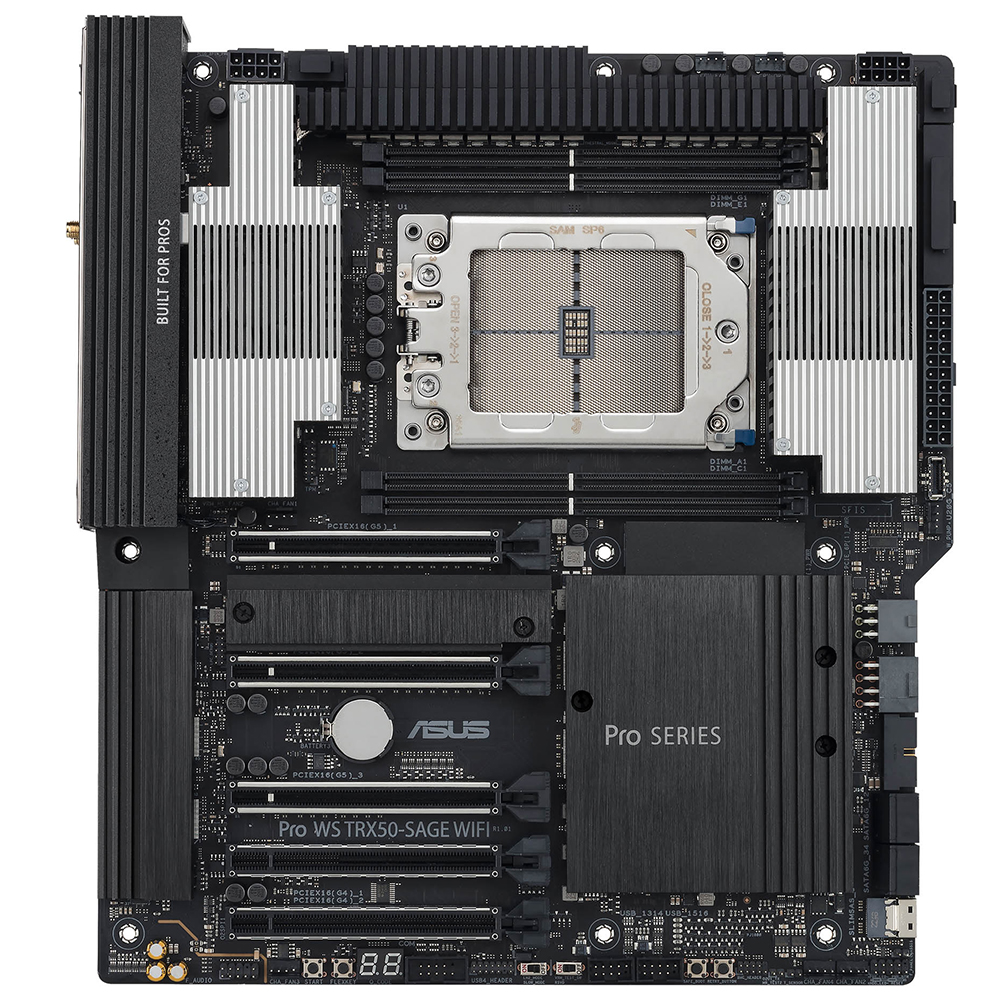Pro WS TRX50-SAGE WIFI anakart, esnek sistem yapılandırması ve genişletmesi ortaya koyan birden fazla PCIe® 5.0/4.0 x16 yuvası barındırır. Güçlü ekran kartlarıyla modelleme, simülasyon ve işleme uygulamalarında gelişmiş performans ortaya koyar.