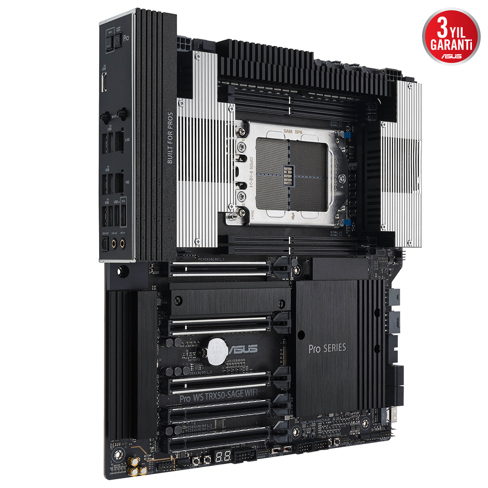 Dahili PCIe® güç bağlantısı, birden fazla ekran kartına destek, VRM soğutma bloklarında aktif soğutma ve ısı borusu, WiFi 7, USB 20Gbps bağlantı noktası, SlimSAS ve IMPI desteği gibi özelliklere sahip olan Pro WS TRX50-SAGE WIFI çeşitli senaryolara ve sektörlere hazır şekilde gelir.